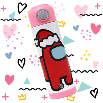 Among US Santa, Παιδικό παγούρι θερμό, ανοξείδωτο, με καλαμάκι ασφαλείας, ΡΟΖ (500ml)