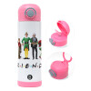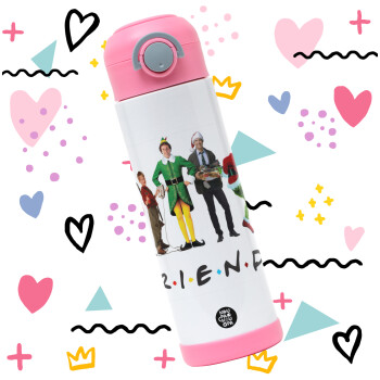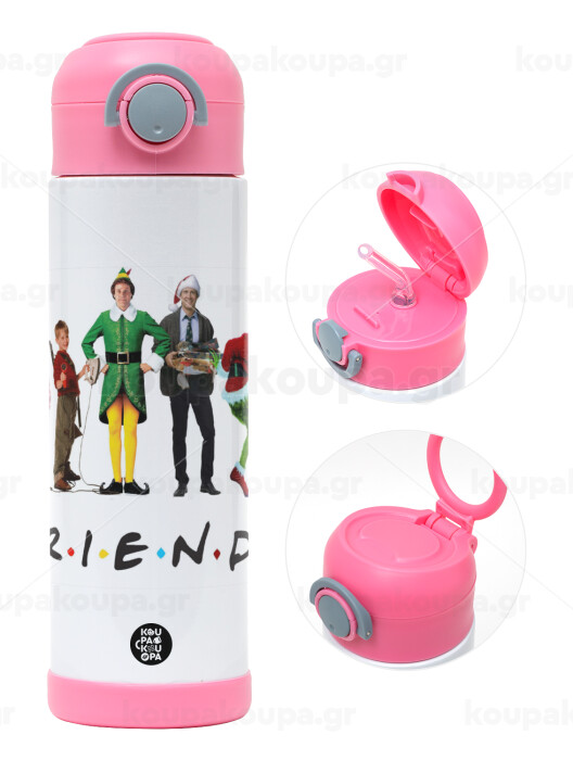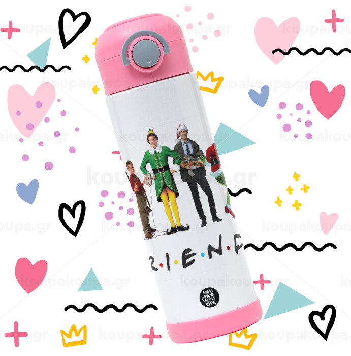 Christmas FRIENDS, Παιδικό παγούρι θερμό, ανοξείδωτο, με καλαμάκι ασφαλείας, ΡΟΖ (500ml)
