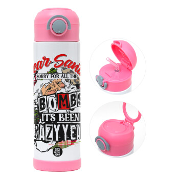 Dear Santa, sorry for all the F-bombs, Παιδικό παγούρι θερμό, ανοξείδωτο, με καλαμάκι ασφαλείας, ΡΟΖ (500ml)