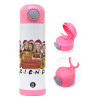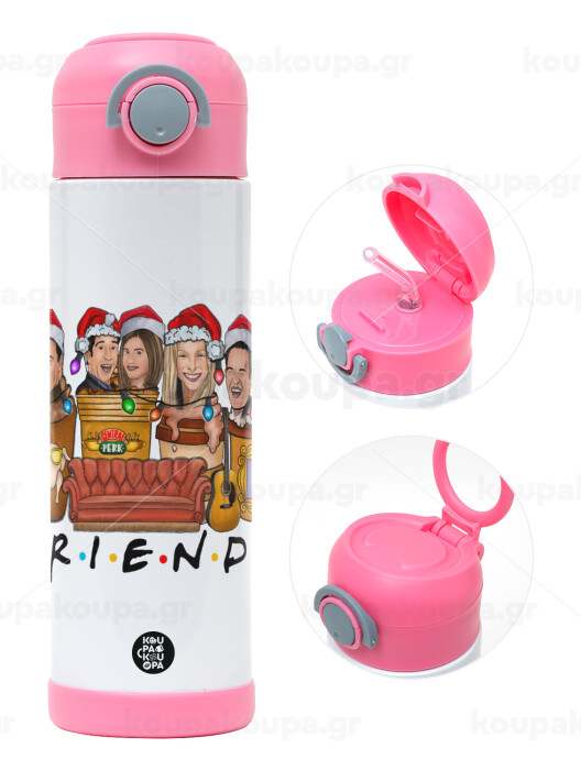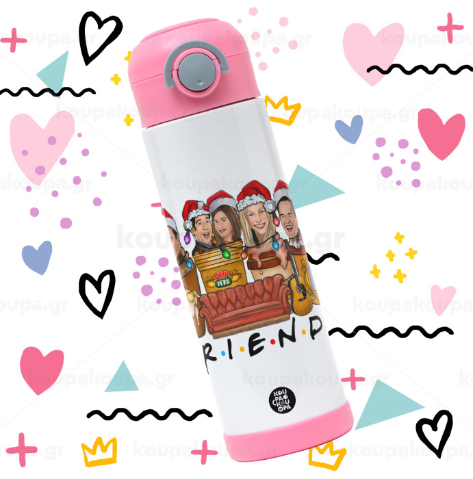 FRIENDS xmas, Παιδικό παγούρι θερμό, ανοξείδωτο, με καλαμάκι ασφαλείας, ΡΟΖ (500ml)
