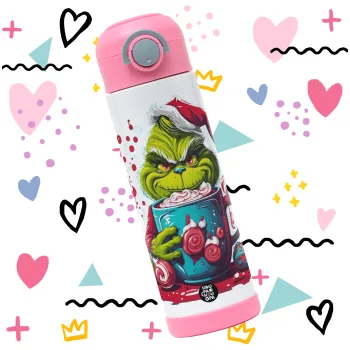 Giggling Grinchy Galore, Παιδικό παγούρι θερμό, ανοξείδωτο, με καλαμάκι ασφαλείας, ΡΟΖ (500ml)