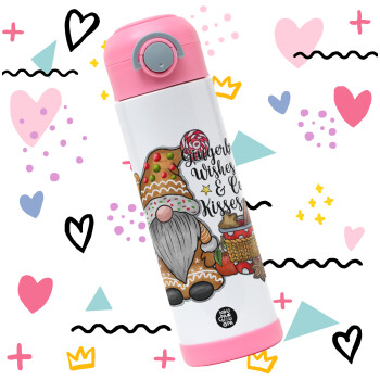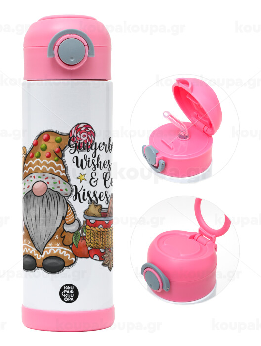 Gingerbread Wishes, Παιδικό παγούρι θερμό, ανοξείδωτο, με καλαμάκι ασφαλείας, ΡΟΖ (500ml)