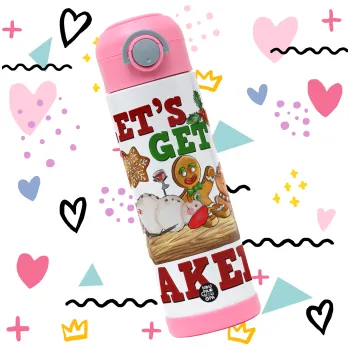 Let's get baked, Παιδικό παγούρι θερμό, ανοξείδωτο, με καλαμάκι ασφαλείας, ΡΟΖ (500ml)