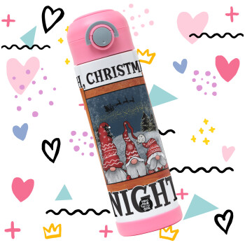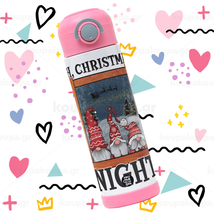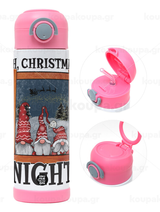 Oh Christmas Night, Παιδικό παγούρι θερμό, ανοξείδωτο, με καλαμάκι ασφαλείας, ΡΟΖ (500ml)