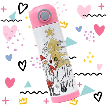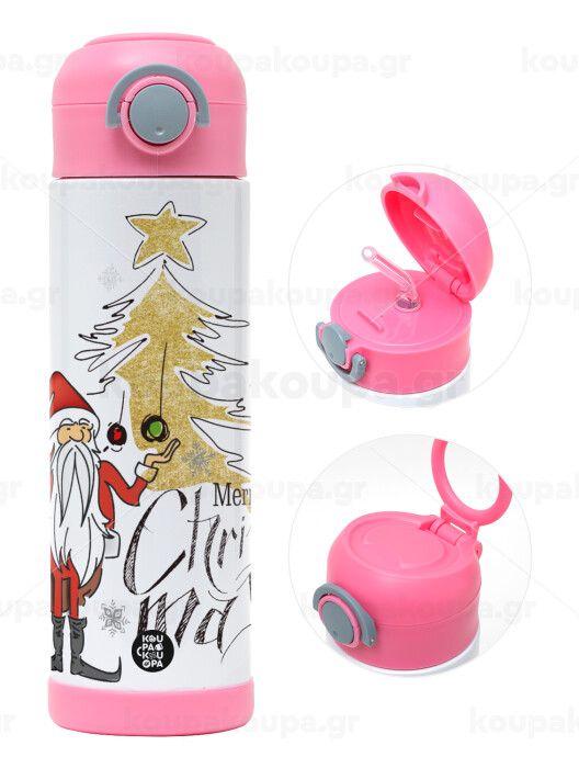 Santa Claus gold, Παιδικό παγούρι θερμό, ανοξείδωτο, με καλαμάκι ασφαλείας, ΡΟΖ (500ml)