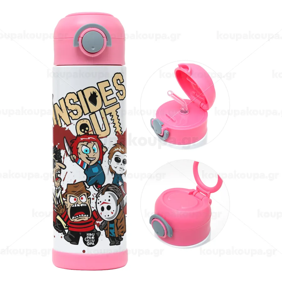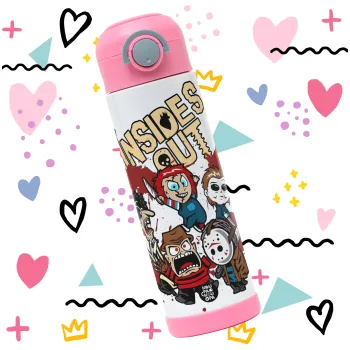 Halloween Inside out, Παιδικό παγούρι θερμό, ανοξείδωτο, με καλαμάκι ασφαλείας, ΡΟΖ (500ml)