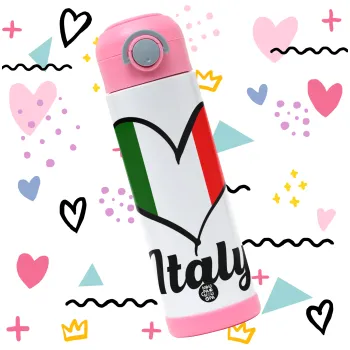 Italy flag, Παιδικό παγούρι θερμό, ανοξείδωτο, με καλαμάκι ασφαλείας, ΡΟΖ (500ml)