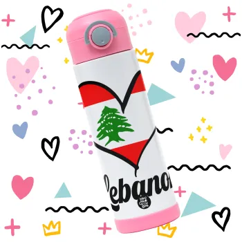 Lebanon flag, Παιδικό παγούρι θερμό, ανοξείδωτο, με καλαμάκι ασφαλείας, ΡΟΖ (500ml)