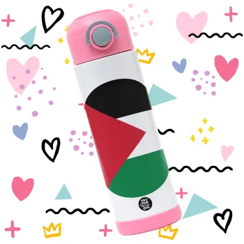 Σημαία Παλαιστίνης, Παιδικό παγούρι θερμό, ανοξείδωτο, με καλαμάκι ασφαλείας, ΡΟΖ (500ml)