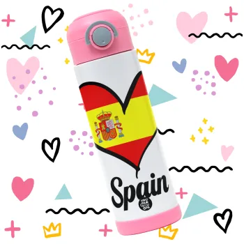Spain flag, Παιδικό παγούρι θερμό, ανοξείδωτο, με καλαμάκι ασφαλείας, ΡΟΖ (500ml)