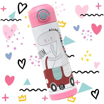 Βρουμ βρουμ, Παιδικό παγούρι θερμό, ανοξείδωτο, με καλαμάκι ασφαλείας, ΡΟΖ (500ml)