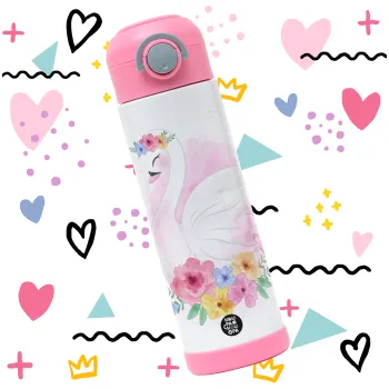 Λευκός κύκνος, Παιδικό παγούρι θερμό, ανοξείδωτο, με καλαμάκι ασφαλείας, ΡΟΖ (500ml)