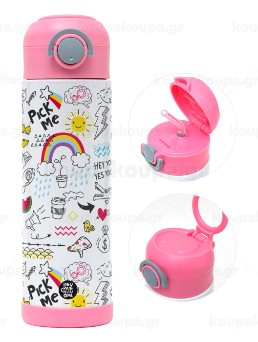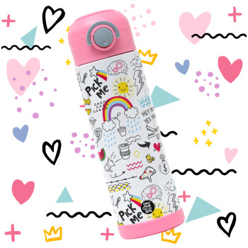 Doodle kids, Παιδικό παγούρι θερμό, ανοξείδωτο, με καλαμάκι ασφαλείας, ΡΟΖ (500ml)