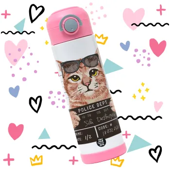 Cool cat, Παιδικό παγούρι θερμό, ανοξείδωτο, με καλαμάκι ασφαλείας, ΡΟΖ (500ml)