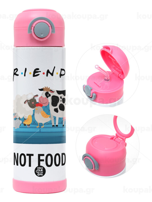 friends, not food, Παιδικό παγούρι θερμό, ανοξείδωτο, με καλαμάκι ασφαλείας, ΡΟΖ (500ml)