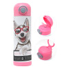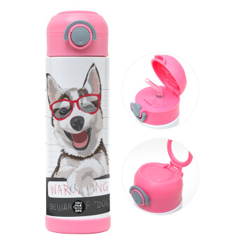 Warning, beware of Dog, Παιδικό παγούρι θερμό, ανοξείδωτο, με καλαμάκι ασφαλείας, ΡΟΖ (500ml)