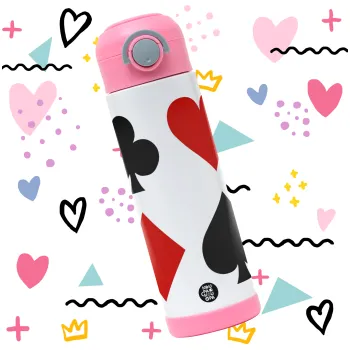 Τραπουλόχαρτα, Παιδικό παγούρι θερμό, ανοξείδωτο, με καλαμάκι ασφαλείας, ΡΟΖ (500ml)