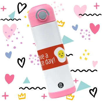 Have a nice day Emoji, Παιδικό παγούρι θερμό, ανοξείδωτο, με καλαμάκι ασφαλείας, ΡΟΖ (500ml)