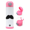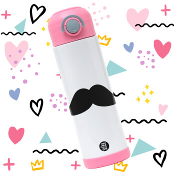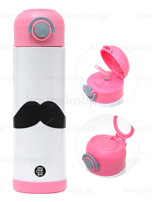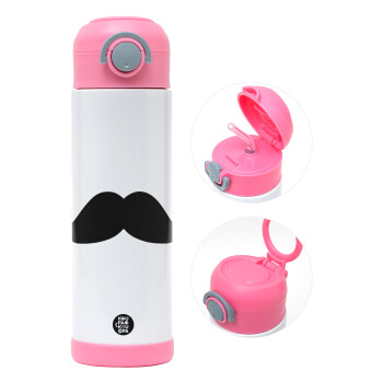 Μουστάκι, Παιδικό παγούρι θερμό, ανοξείδωτο, με καλαμάκι ασφαλείας, ΡΟΖ (500ml)