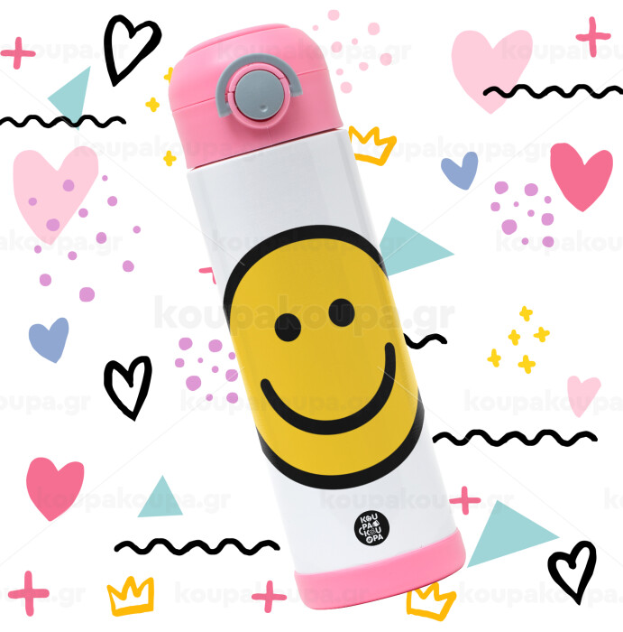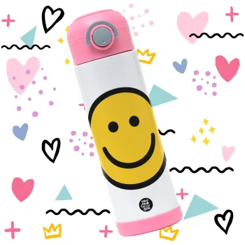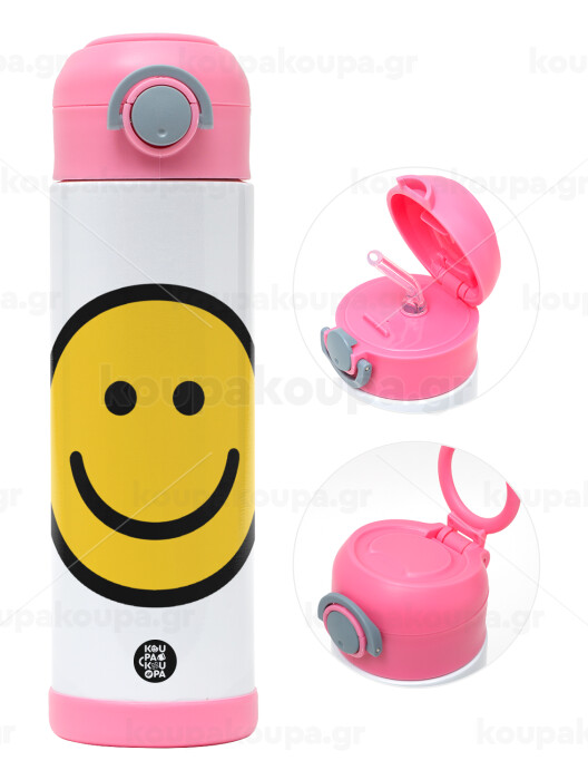 Smile classic, Παιδικό παγούρι θερμό, ανοξείδωτο, με καλαμάκι ασφαλείας, ΡΟΖ (500ml)