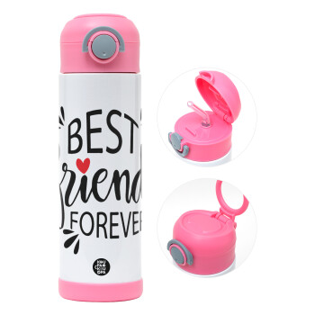 Best Friends forever, Παιδικό παγούρι θερμό, ανοξείδωτο, με καλαμάκι ασφαλείας, ΡΟΖ (500ml)