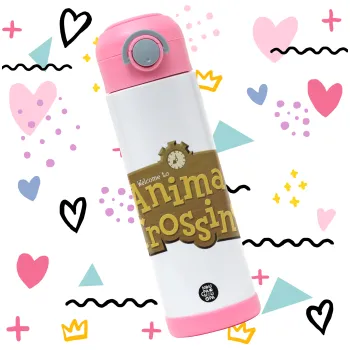 Animal Crossing, Παιδικό παγούρι θερμό, ανοξείδωτο, με καλαμάκι ασφαλείας, ΡΟΖ (500ml)