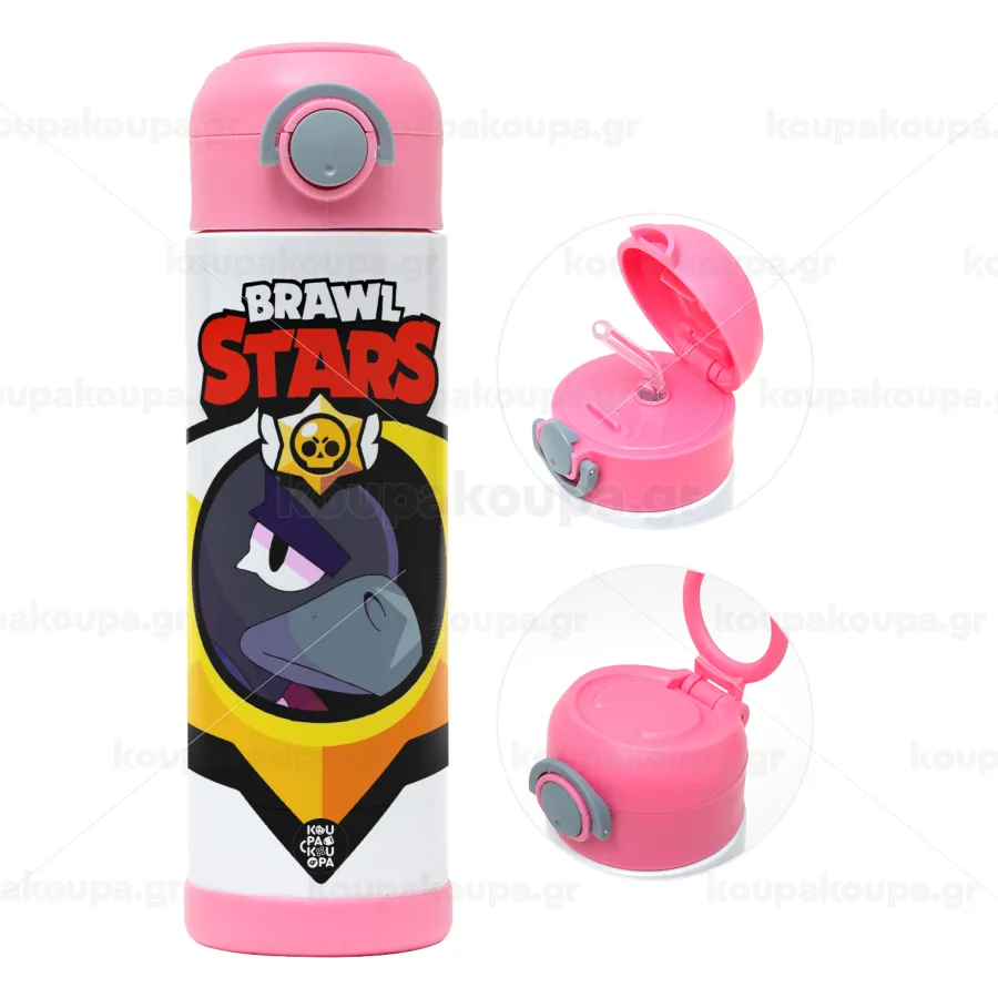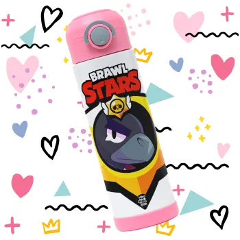 Brawl Stars Crow, Παιδικό παγούρι θερμό, ανοξείδωτο, με καλαμάκι ασφαλείας, ΡΟΖ (500ml)
