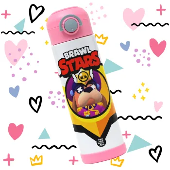 Brawl Stars Ruffs, Παιδικό παγούρι θερμό, ανοξείδωτο, με καλαμάκι ασφαλείας, ΡΟΖ (500ml)