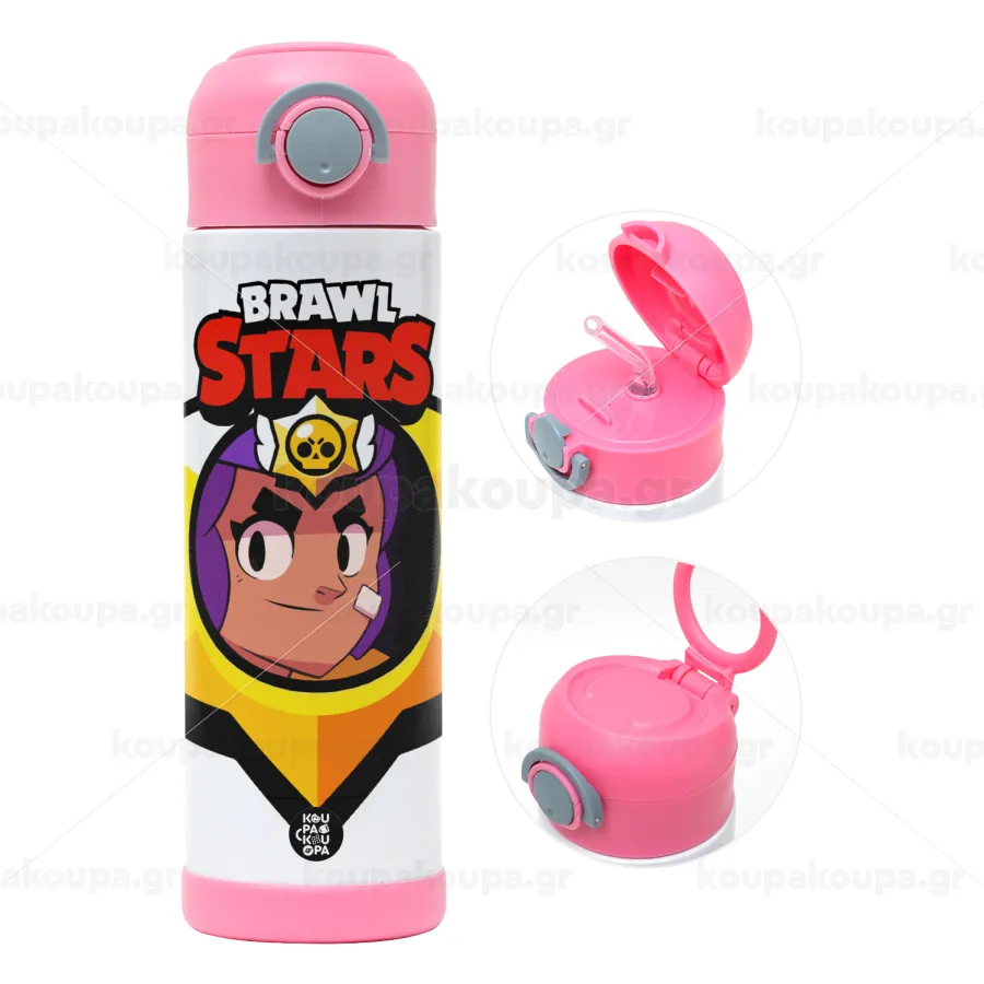 Brawl Stars Shelly, Παιδικό παγούρι θερμό, ανοξείδωτο, με καλαμάκι ασφαλείας, ΡΟΖ (500ml)