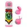 Brawl Stars Spike, Παιδικό παγούρι θερμό, ανοξείδωτο, με καλαμάκι ασφαλείας, ΡΟΖ (500ml)