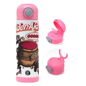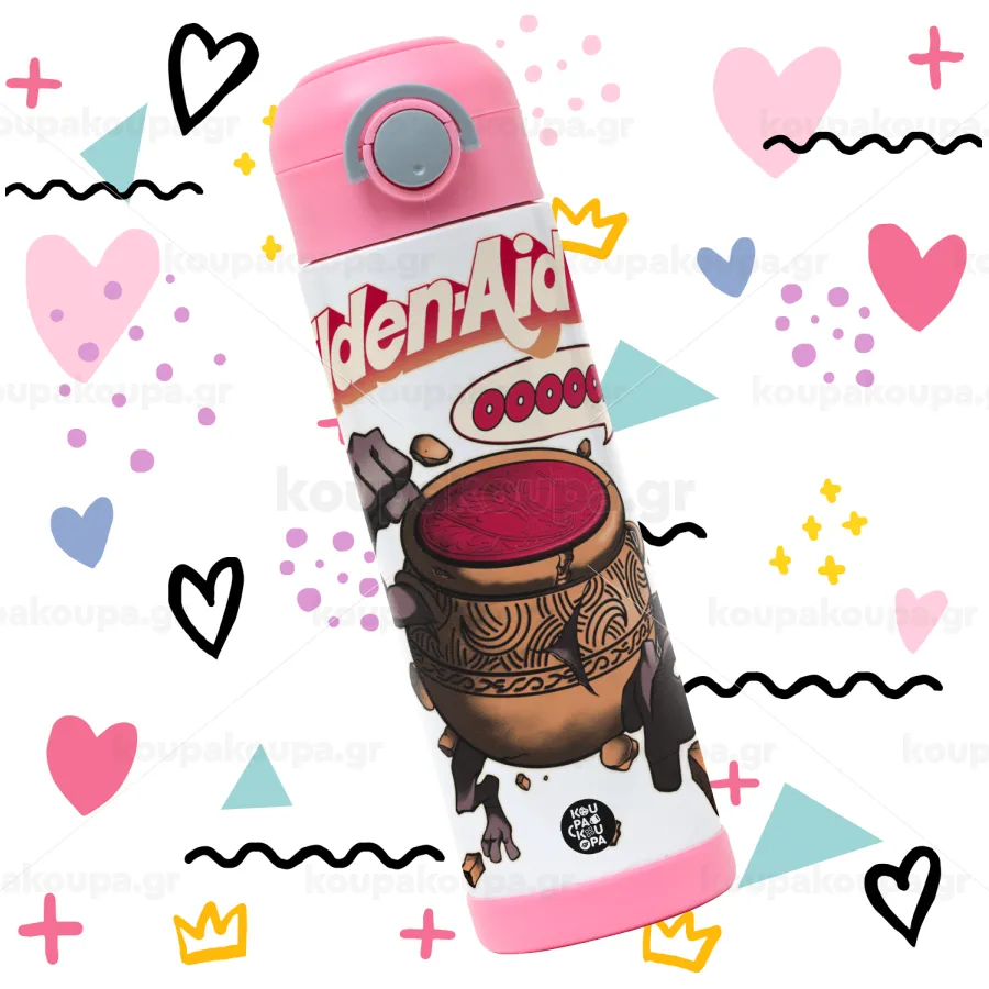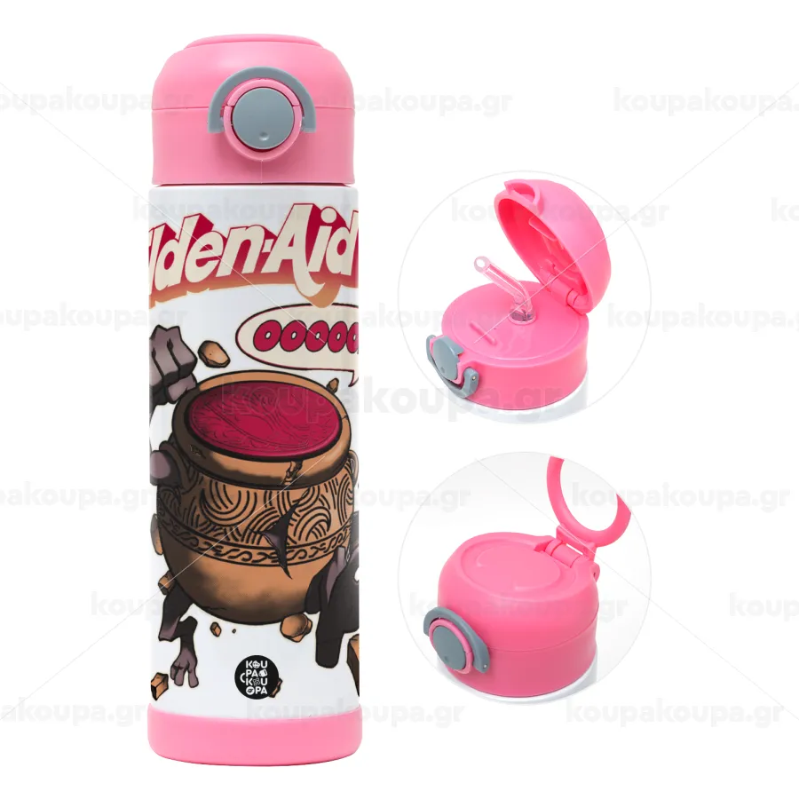 Elden-Aid, Elden Ring inspired , Παιδικό παγούρι θερμό, ανοξείδωτο, με καλαμάκι ασφαλείας, ΡΟΖ (500ml)