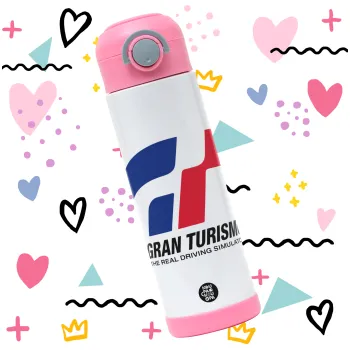 gran turismo, Παιδικό παγούρι θερμό, ανοξείδωτο, με καλαμάκι ασφαλείας, ΡΟΖ (500ml)