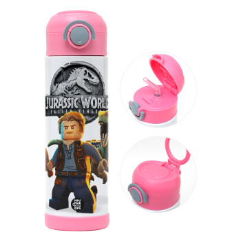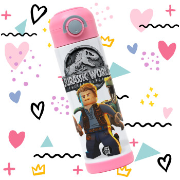 Jurassic world, Παιδικό παγούρι θερμό, ανοξείδωτο, με καλαμάκι ασφαλείας, ΡΟΖ (500ml)