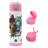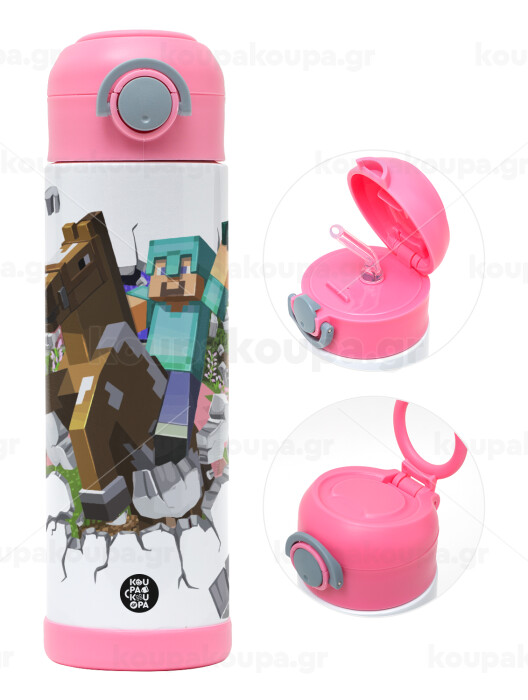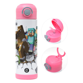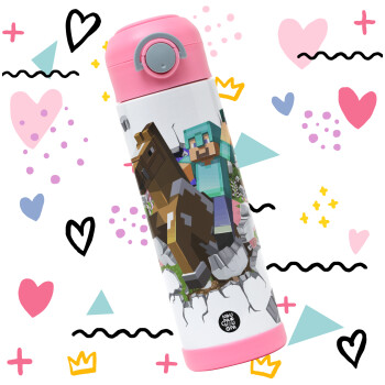 Minecraft brick, Παιδικό παγούρι θερμό, ανοξείδωτο, με καλαμάκι ασφαλείας, ΡΟΖ (500ml)