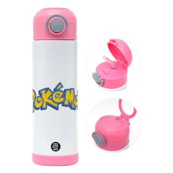 Pokemon, Παιδικό παγούρι θερμό, ανοξείδωτο, με καλαμάκι ασφαλείας, ΡΟΖ (500ml)