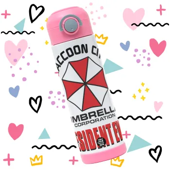 Resident Evil, Παιδικό παγούρι θερμό, ανοξείδωτο, με καλαμάκι ασφαλείας, ΡΟΖ (500ml)