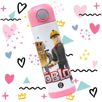 Roblox, Παιδικό παγούρι θερμό, ανοξείδωτο, με καλαμάκι ασφαλείας, ΡΟΖ (500ml)