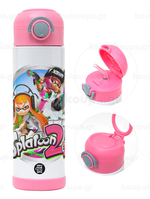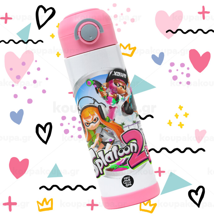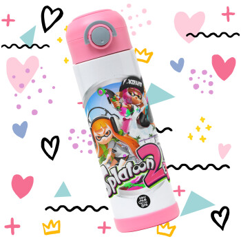 Splatoon 2, Παιδικό παγούρι θερμό, ανοξείδωτο, με καλαμάκι ασφαλείας, ΡΟΖ (500ml)
