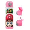 Super mario head, Παιδικό παγούρι θερμό, ανοξείδωτο, με καλαμάκι ασφαλείας, ΡΟΖ (500ml)
