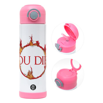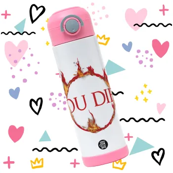 You Died | Dark Souls, Παιδικό παγούρι θερμό, ανοξείδωτο, με καλαμάκι ασφαλείας, ΡΟΖ (500ml)