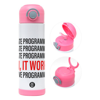 Wordpress, Παιδικό παγούρι θερμό, ανοξείδωτο, με καλαμάκι ασφαλείας, ΡΟΖ (500ml)