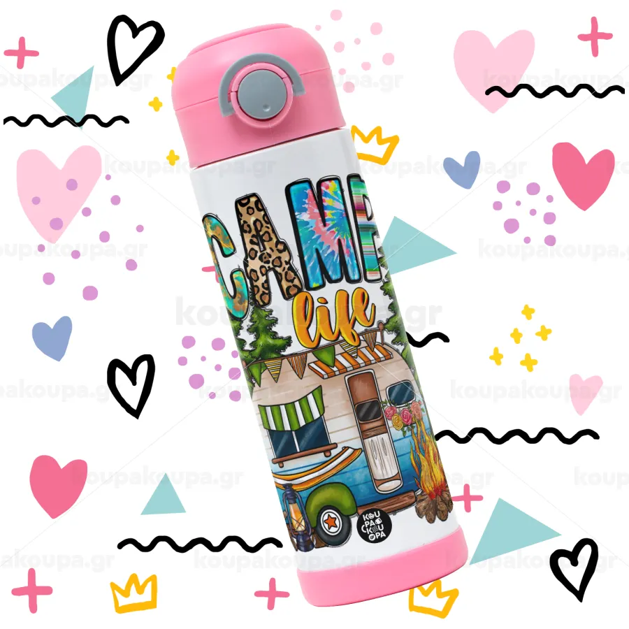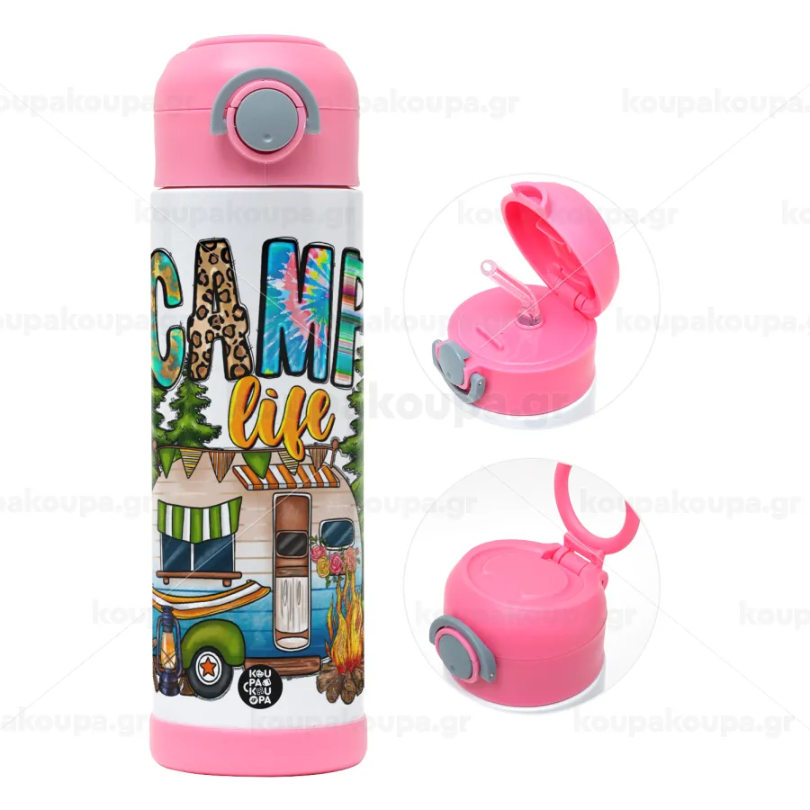 Camp Life, Παιδικό παγούρι θερμό, ανοξείδωτο, με καλαμάκι ασφαλείας, ΡΟΖ (500ml)