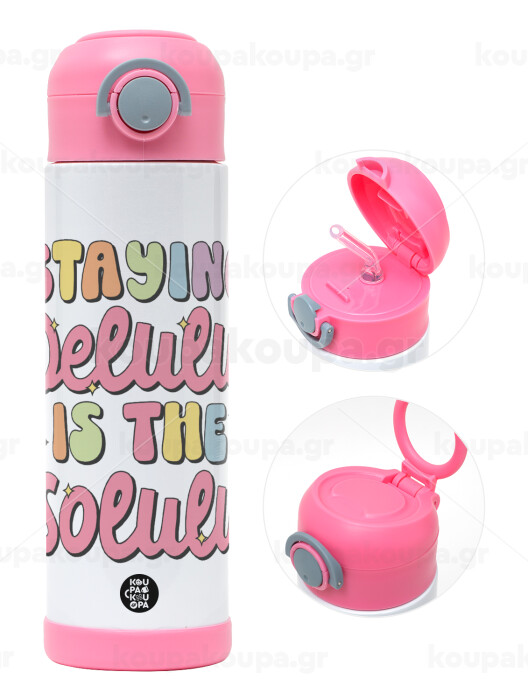 Delulu, Παιδικό παγούρι θερμό, ανοξείδωτο, με καλαμάκι ασφαλείας, ΡΟΖ (500ml)