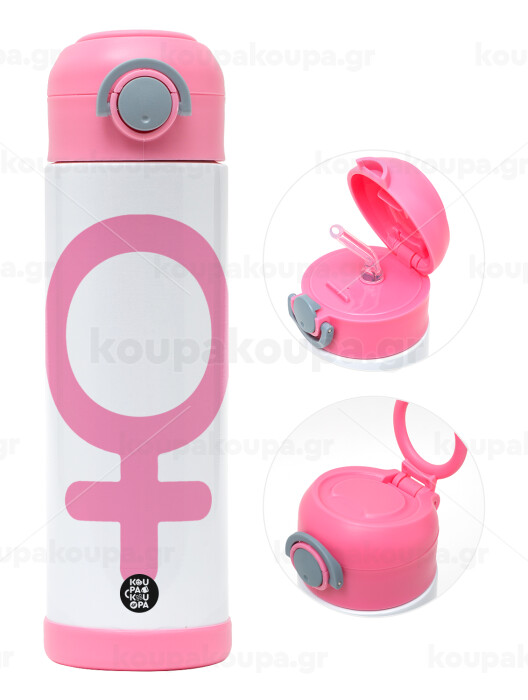 FEMALE, Παιδικό παγούρι θερμό, ανοξείδωτο, με καλαμάκι ασφαλείας, ΡΟΖ (500ml)