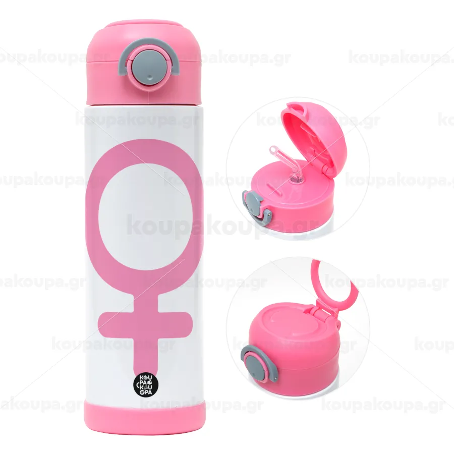 FEMALE, Παιδικό παγούρι θερμό, ανοξείδωτο, με καλαμάκι ασφαλείας, ΡΟΖ (500ml)