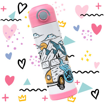 Life is a trip, Παιδικό παγούρι θερμό, ανοξείδωτο, με καλαμάκι ασφαλείας, ΡΟΖ (500ml)