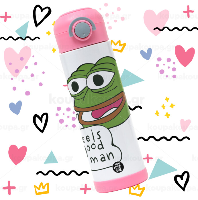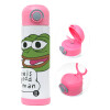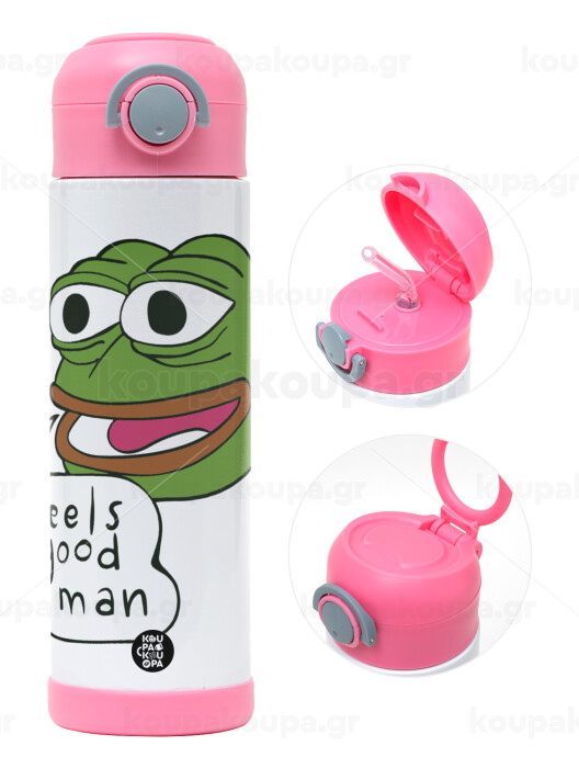 Pepe the frog, Παιδικό παγούρι θερμό, ανοξείδωτο, με καλαμάκι ασφαλείας, ΡΟΖ (500ml)