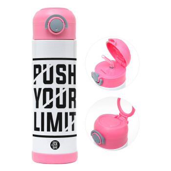 Push your limit, Παιδικό παγούρι θερμό, ανοξείδωτο, με καλαμάκι ασφαλείας, ΡΟΖ (500ml)