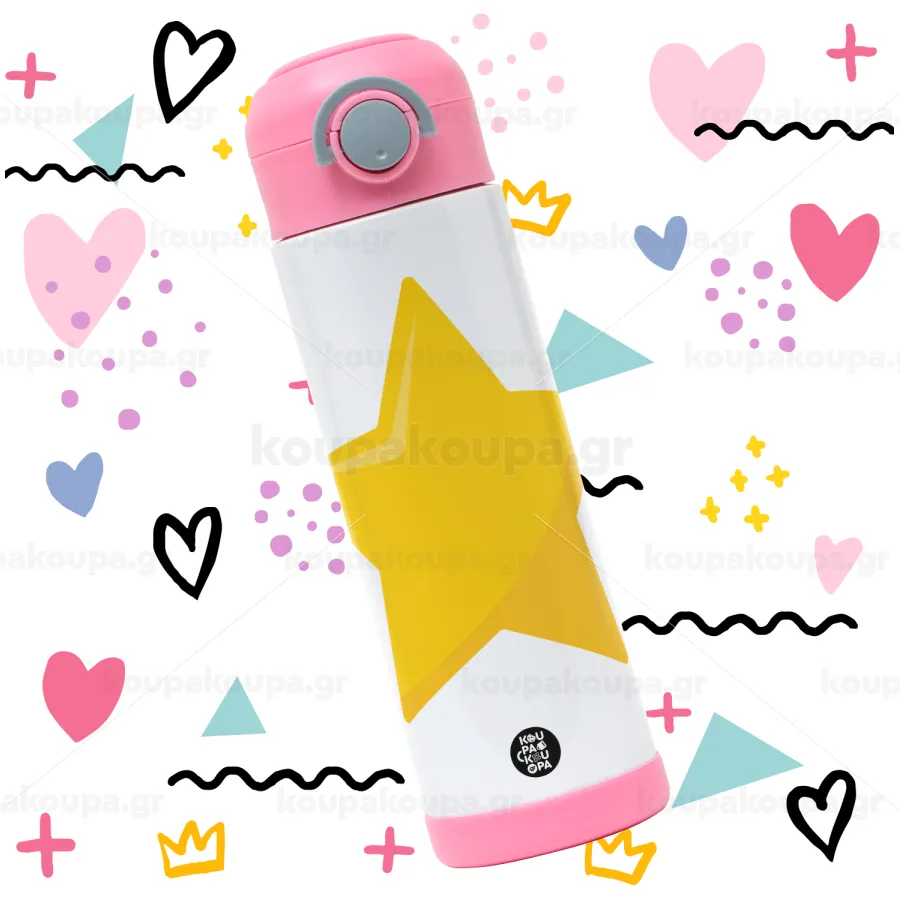 Τέλος τα πλαστικά μπουκάλια! Παρουσιάζουμε το απόλυτο μπουκάλι θερμό για τα παιδιά σας! Κατασκευασμένο από ανοξείδωτο ατσάλι, το μπουκάλι μας χωράει 500ml υγρό και είναι ιδανικό για το σχολείο και τις υπαίθριες δραστηριότητες. Με το απαλό άκρο, οι μικροί μας φίλοι μπορούν να πίνουν κατευθείαν από το μπουκάλι χωρίς καλαμάκι. Το ευρύ άνοιγμα του μας επιτρέπει να το καθαρίσουμε εύκολα για άψογη υγιεινή! Λαβή για εύκολη μεταφορά, καπάκι βιδωτό για ασφάλεια και λαβή για άνετο κράτημα. Επίσης, το μπουκάλι μας είναι BPA FREE, διατηρεί το πόσιμο δροσερό και δροσιστικό έξω από το ψυγείο.