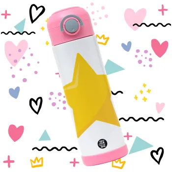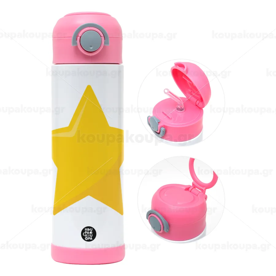 Star, Παιδικό παγούρι θερμό, ανοξείδωτο, με καλαμάκι ασφαλείας, ΡΟΖ (500ml)
